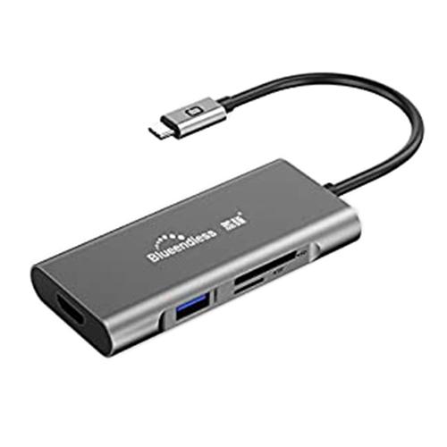 Adapteris USB C kištukas į 3 USB 3.0 prievadus, Type C, HDMI, turi SD ir TF kortelių lizdus.