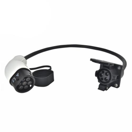 Elektromobilio įkrovimo kabelio adapteris iš Type 2 (Female) į Type 1 (male) lizdą, su 0.3m laidu.