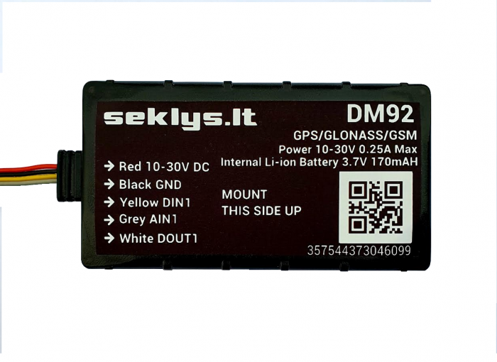 GPS seklys maitinamas nuo transporto priemonės maitinimo šaltinio (10-30V), tačiau atjungus maitinimą, vidinė baterija tarnauja dar ~10 valandų ir seklys perduoda maršruto duomenis.