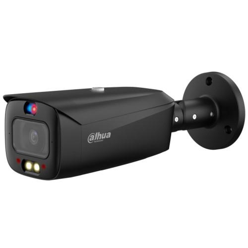IP kamera AI FULL-COLOR cilindrinė 8MP su integruotu dvigubu mikrofonu, aktyvaus atgrasymo, su raudonu/mėlynu blyksinčios šviesos ir garso aliarmu. 1/1.8 colio FULL-COLOR CMOS sensorius. Hibridinis IR+LED (IR+warm light) pašvietimas iki 50m. 8MP(3840 x2160) @(1~25)fps. Fiksuotas objektyvas: 3.6mm F1.0 apžvalgos kampas 93°. H.265+/H.265/H.264+/H.264. BLC, HLC, WDR 120dB, ROI, IVS, AI SSA, SMD 4.0, PoE, koridoriaus režimas. 3D-NR: triukšmų mažinimo technologija. SD atminties prievadas Max 512GB. IP67 atspari drėgmei tinka lauko ir vidaus sąlygoms. 3 ašių reguliavimas. Palaiko ONVIF (Profile S/Profile G/Profile T); CGI; P2P standartą. Modelis: IPC-HFW3849T1-AS-PV-PRO 3.6mm, spalva juoda.
