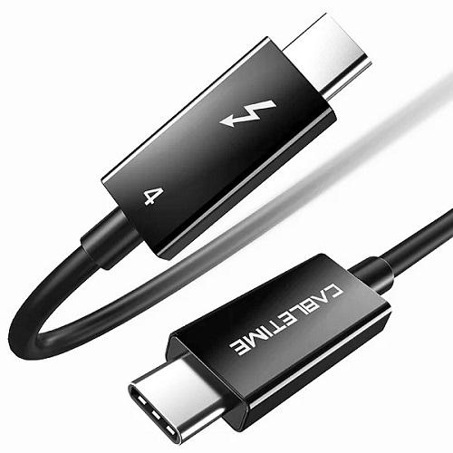 Thunderbolt 4 kabelis užtikrina greitą duomenų perdavimą, išveda vaizdo signalą ir tuo pačiu metu gali tiekti energiją suderinamiems įrenginiams (įskaitant nešiojamojo kompiuterio įkrovimą).