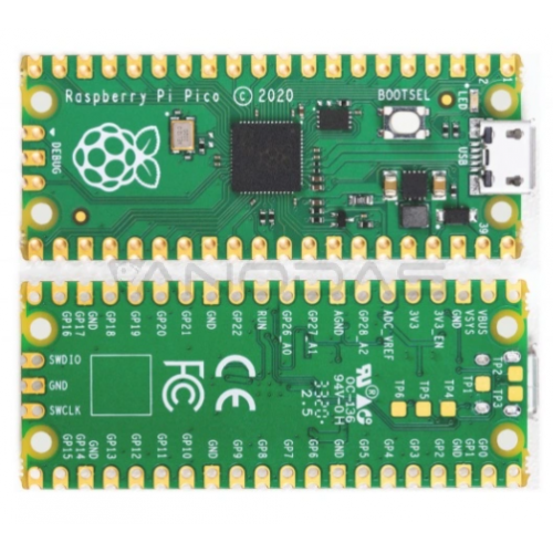 Mažas „Raspberry Pi Pico“ modulis su patentuotu „Raspberry RP2040“ mikrovaldikliu. RP2040 yra dviejų branduolių „ARM Cortex M0 +“ lustas, kurio dažnis yra 133 MHz. Modulis turi 264 kB SRAM ir 2 MB „Flash“ atminties. Sistemoje yra 26 GPIO kaiščiai, kurie dirba su 3,3 V įtampa ir temperatūros jutikliu. „Raspberry Pi Pico“ yra užprogramuojamas C / C ++ ir „MicroPython“ per „microUSB“ jungtį.