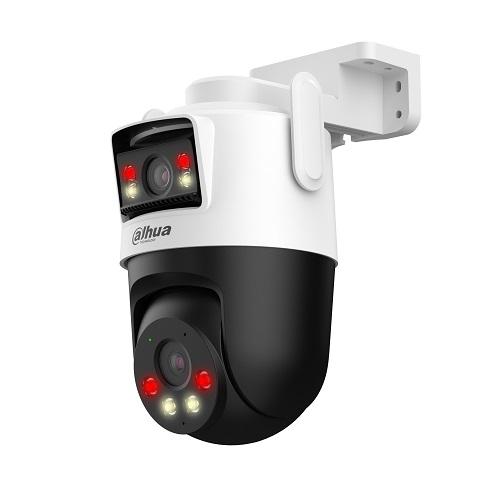 IP valdoma kamera, lauko IP66, 5MP+5MP dviejų objektyvų, (2880 × 1620)@15fps, 1/3" CMOS sensorius, IR+LED dvigubas pašvietimas iki 50/40m, ir iki 30/20m, SD iki 256 GB, 2.8mm fiksuotas objektyvas, apžvalgos kampas apie 95°, F1.6; PT 6mm fiksuotas objektyvas, apžvalgos kampas 49°; sukimosi kampas 352°, su įmontuotu mikrofonu ir garsiakalbiu, aktyviu atgrasymu; H.265, Wi-Fi 2.4GHz, išmanaus aptikimo ir sekimo, PICOO serija; DMSS; Modelis DH-P5D-5F-PV.