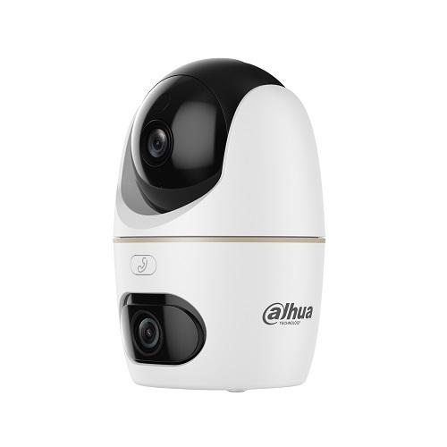 IP valdoma kamera, vidinė, 5MP+5MP dviejų objektyvų, (2880 × 1620)@15fps, 1/3" CMOS sensorius, IR+LED dvigubas pašvietimas iki 30m, SD iki 256 GB, 3.6mm objektyvas, apžvalgos kampas apie 86°, F2.0, sukimosi kampas 349°, su įmontuotu mikrofonu ir garsiakalbiu, H.265, Wi-Fi 2.4G/5GHz, išmanaus aptikimo ir sekimo, su privatumo užsklanda; HERO serija; DMSS; Modelis DH-H5D-5F.