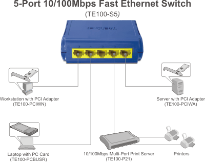 TRENDNET 5-Port 10/100Mbps Switch TE100-S5
